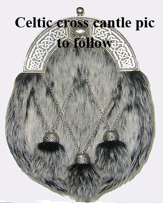 Dress sporrans > Celtic cross crossed/straight faux fur - grey - Vegetarian Sporrans - Vegan animal free leather sporrans and belts